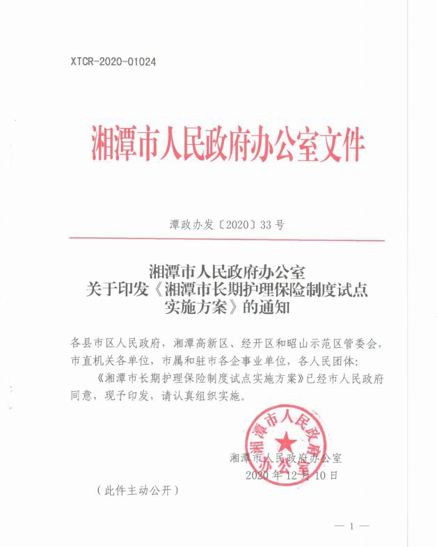 潭政辦發(fā)〔2020〕33號(hào)湘潭市人民政府辦公室關(guān)于印發(fā)《湘潭市長(zhǎng)期護(hù)理保險(xiǎn)制度試點(diǎn)實(shí)施方案》的通知